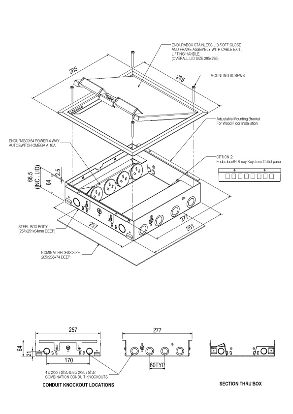EBRD BOX, STAINLESS STEEL FLUSH SOFT CLOSE LID BEVEL SURROUND, 4 X PROVISION TO MOUNT STANDARD PLATE