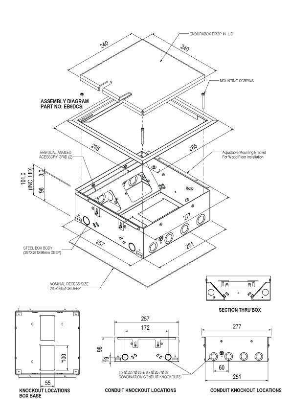 EB98 BOX, DROP IN LID, CARPET SURROUND - 4 X PROVISION TO MOUNT STANDARD PLATE