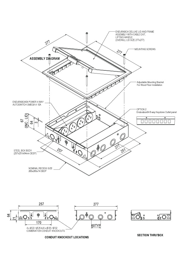 EB64 BOX, PLASTIC RECESS LID BEVEL SURROUND, 4 X AUTO SWITCHED POWER, PROVISION TO MOUNT 8 X KEYSTONE DATA (EXCLUDES BEZEL)